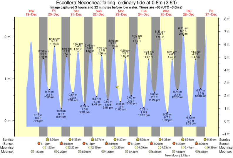 Image captured 3 hours and 22 minutes before low water (falling ordinary tide). Tide height was 0.8m (2.6 ft). Range 2.38m (7.8 ft). Toggle tide graph