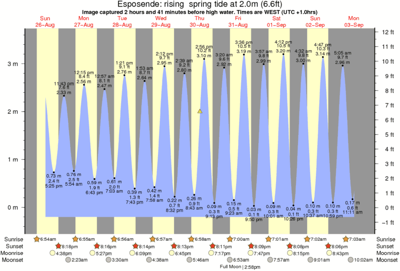 Image captured 2 hours and 41 minutes before high water (rising spring tide). Tide height was 2.0m (6.6 ft). Range 3.58m (11.7 ft). Toggle tide graph