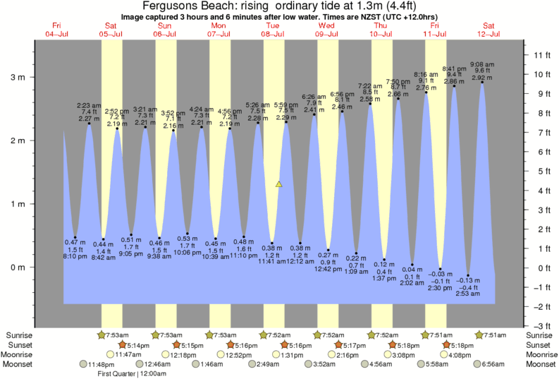 Image captured 3 hours and 6 minutes after low water (rising ordinary tide). Tide height was 1.3m (4.4 ft). Range 3.79m (12.4 ft). Toggle tide graph