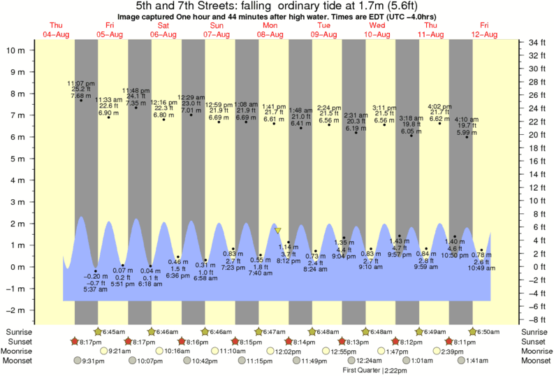 Forecast wind and swell just offshore from 5th and 7th Streets around the time the photo was taken