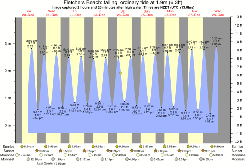 Forecast wind and swell just offshore from Fletchers Beach around the time the photo was taken