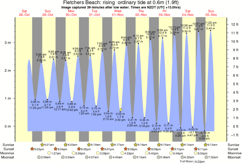 Forecast wind and swell just offshore from Fletchers Beach around the time the photo was taken