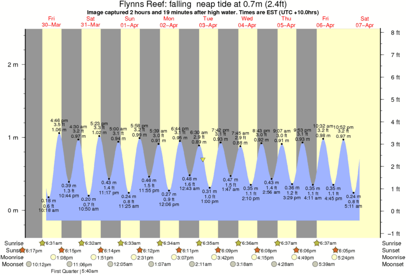 Image captured 2 hours and 19 minutes after high water (falling neap tide). Tide height was 0.7m (2.4 ft). Range 2.39m (7.8 ft). Toggle tide graph