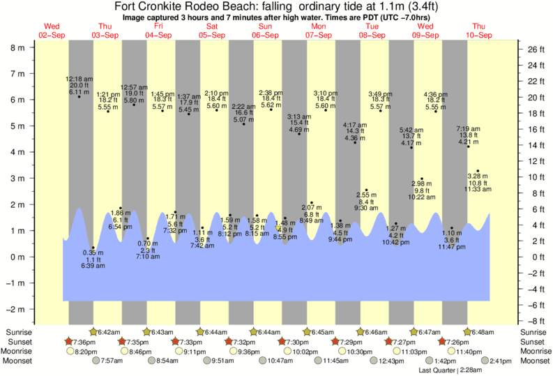 Image captured 3 hours and 7 minutes after high water (falling ordinary tide). Tide height was 1.1m (3.4 ft). Range 9.06m (29.7 ft). Toggle tide graph