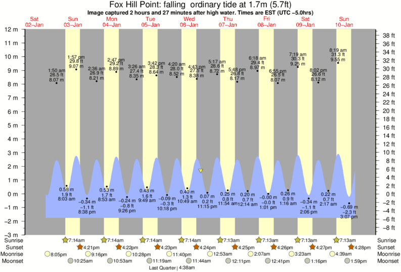 Image captured 2 hours and 27 minutes after high water (falling ordinary tide). Tide height was 1.7m (5.7 ft). Range 12.52m (41.1 ft). Toggle tide graph