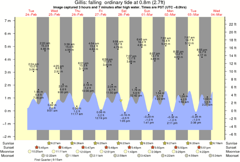 Image captured 3 hours and 7 minutes after high water (falling ordinary tide). Tide height was 0.8m (2.7 ft). Range 7.97m (26.1 ft). Toggle tide graph