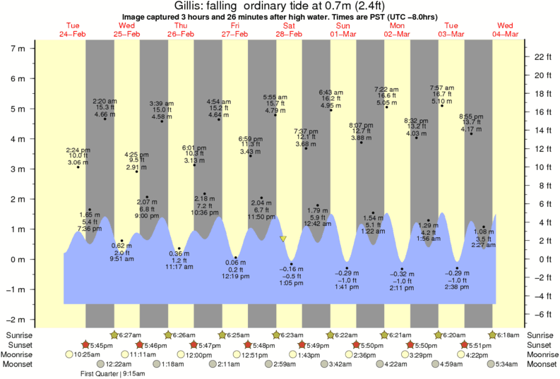 Forecast wind and swell just offshore from Gillis around the time the photo was taken