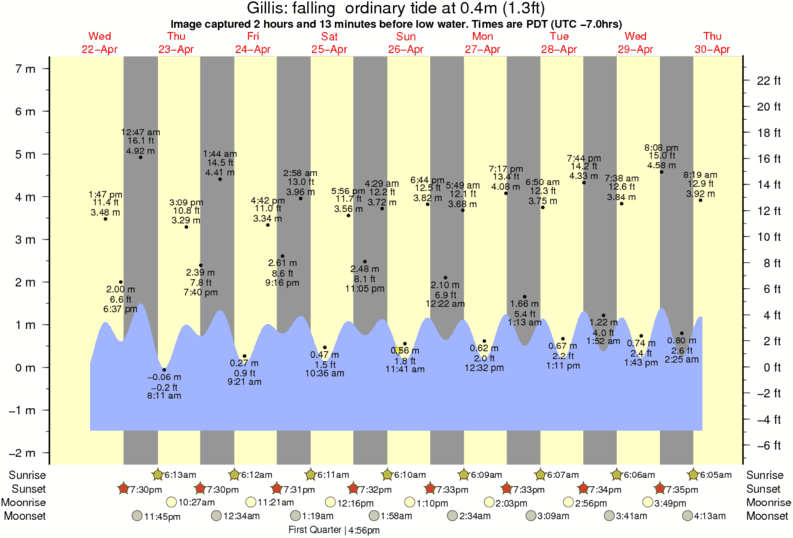 Image captured 2 hours and 13 minutes before low water (falling ordinary tide). Tide height was 0.4m (1.3 ft). Range 7.97m (26.1 ft). Toggle tide graph