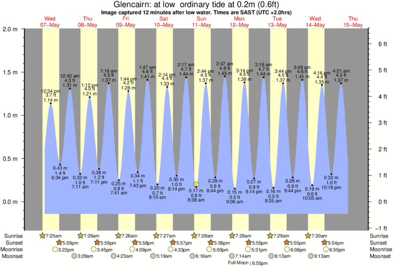 Image captured 12 minutes after low water (at low ordinary tide). Tide height was 0.2m (0.6 ft). Range 1.95m (6.4 ft). Toggle tide graph