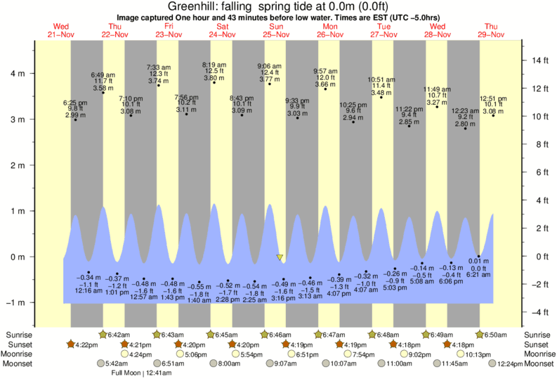 Image captured One hour and 43 minutes before low water (falling spring tide). Tide height was 0.0m (0.0 ft). Range 5.22m (17.1 ft). Toggle tide graph