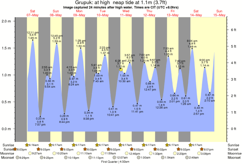 Image captured 24 minutes after high water (at high neap tide). Tide height was 1.1m (3.7 ft). Range 1.93m (6.3 ft). Toggle tide graph
