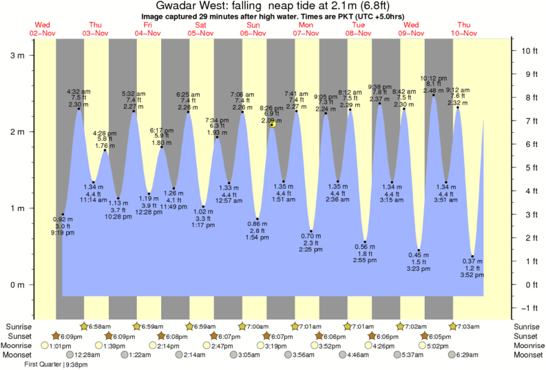 Forecast wind and swell just offshore from Gwadar West around the time the photo was taken