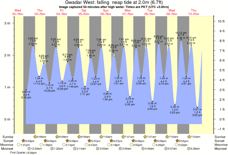 Image captured 54 minutes after high water (falling neap tide). Tide height was 2.0m (6.7 ft). Range 3.06m (10.0 ft). Toggle tide graph