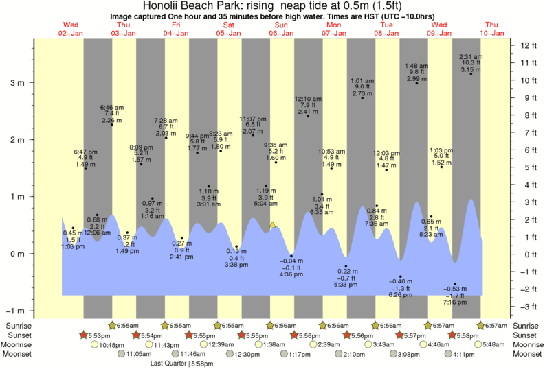 Forecast wind and swell just offshore from Honolii Beach Park around the time the photo was taken