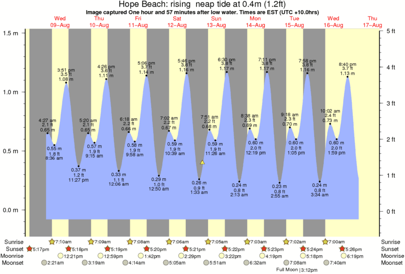 Image captured One hour and 57 minutes after low water (rising neap tide). Tide height was 0.4m (1.2 ft). Range 1.47m (4.8 ft). Toggle tide graph