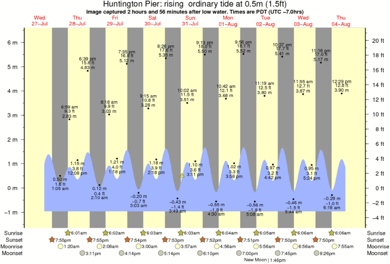 Forecast wind and swell just offshore from Huntington Pier around the time the photo was taken