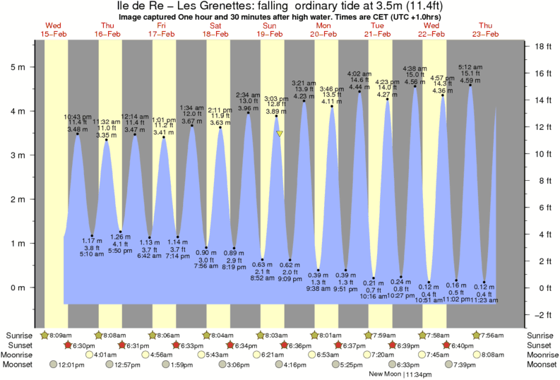 Image captured One hour and 30 minutes after high water (falling ordinary tide). Tide height was 3.5m (11.4 ft). Range 5.45m (17.9 ft). Toggle tide graph