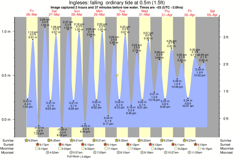 Image captured 2 hours and 37 minutes before low water (falling ordinary tide). Tide height was 0.5m (1.5 ft). Range 1.14m (3.7 ft). Toggle tide graph