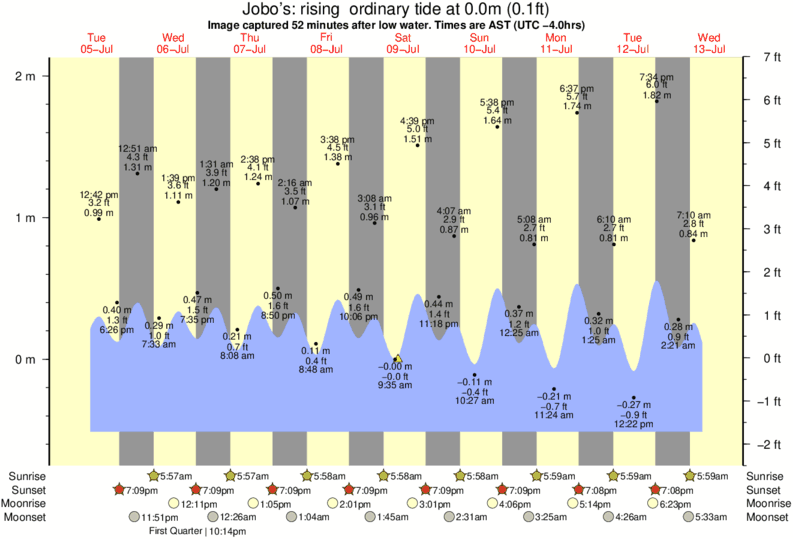 Image captured 52 minutes after low water (rising ordinary tide). Tide height was 0.0m (0.1 ft). Range 2.40m (7.9 ft). Toggle tide graph