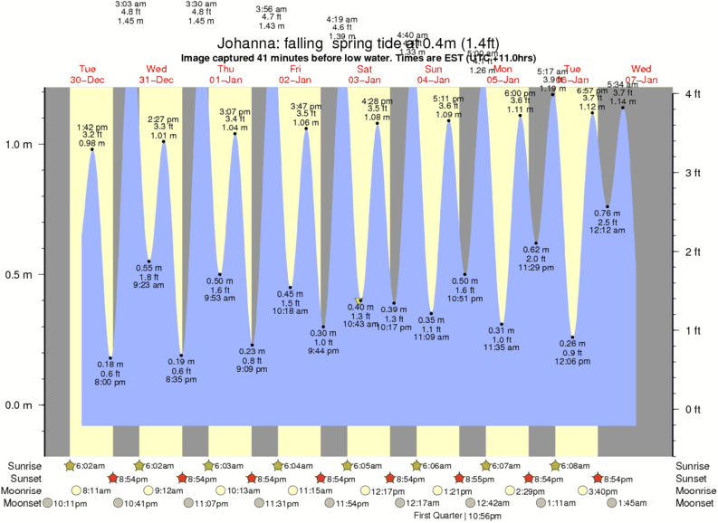 Image captured 41 minutes before low water (falling spring tide). Tide height was 0.4m (1.4 ft). Range 1.18m (3.9 ft). Toggle tide graph