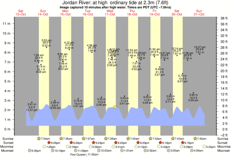 Forecast wind and swell just offshore from Jordan River around the time the photo was taken