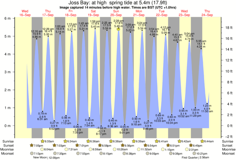 Image captured 14 minutes before high water (at high spring tide). Tide height was 5.4m (17.9 ft). Range 5.65m (18.5 ft). Toggle tide graph