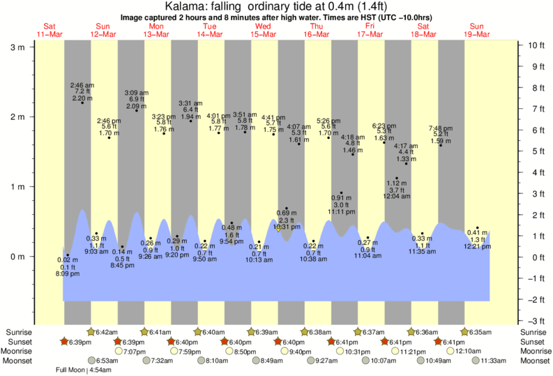 Image captured 2 hours and 8 minutes after high water (falling ordinary tide). Tide height was 0.4m (1.4 ft). Range 3.40m (11.2 ft). Toggle tide graph