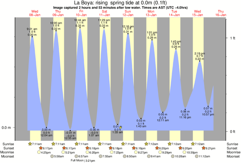 Image captured 2 hours and 53 minutes after low water (rising spring tide). Tide height was 0.0m (0.1 ft). Range 0.34m (1.1 ft). Toggle tide graph