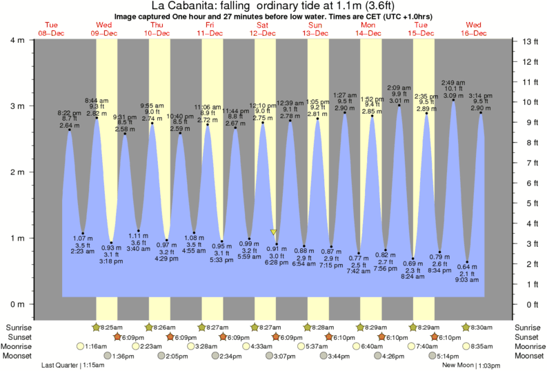 Forecast wind and swell just offshore from La Cabanita around the time the photo was taken