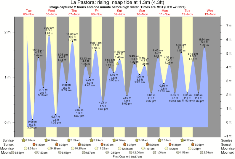 Image captured 2 hours and one minute before high water (rising neap tide). Tide height was 1.3m (4.3 ft). Range 2.23m (7.3 ft). Toggle tide graph