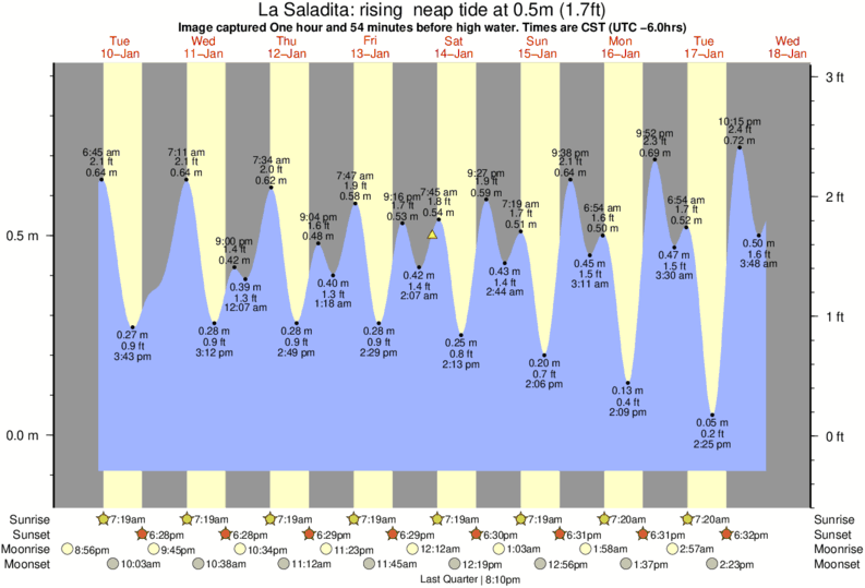 Forecast wind and swell just offshore from La Saladita around the time the photo was taken