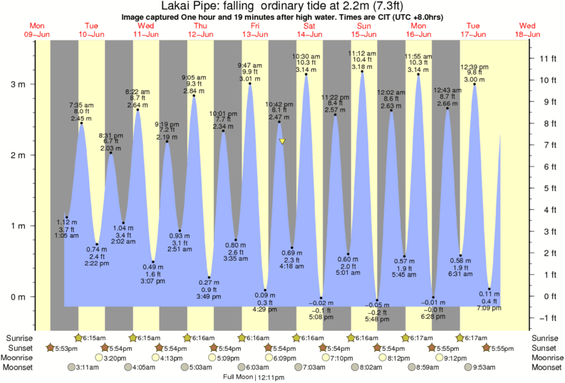 Forecast wind and swell just offshore from Lakey Pipe around the time the photo was taken