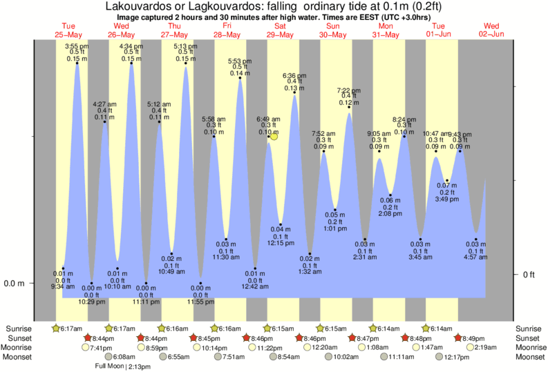 Image captured 2 hours and 30 minutes after high water (falling ordinary tide). Tide height was 0.1m (0.2 ft). Range 0.16m (0.5 ft). Toggle tide graph