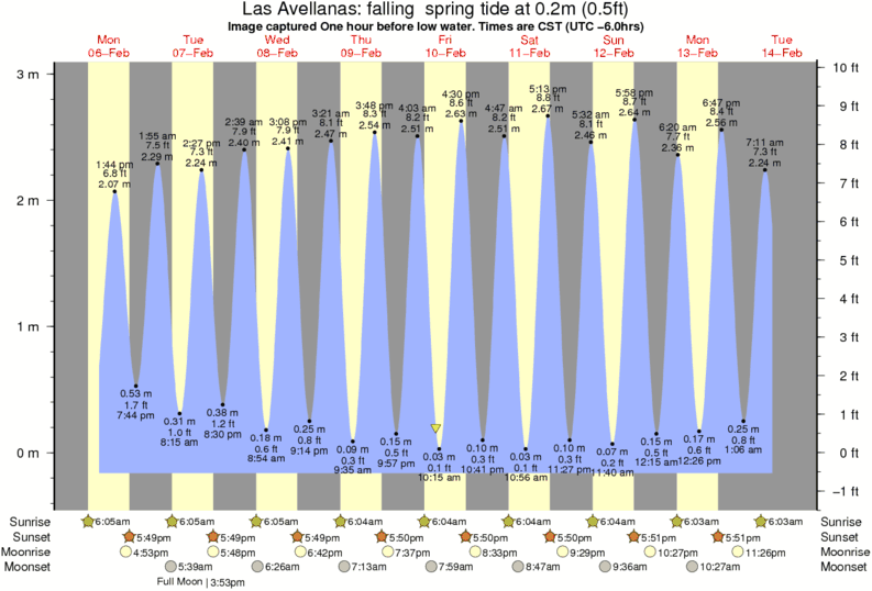 Forecast wind and swell just offshore from Las Avellanas around the time the photo was taken