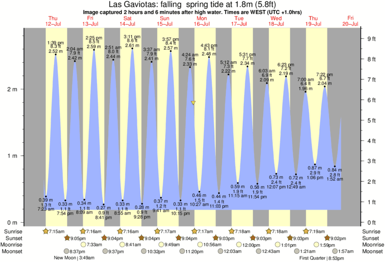 Image captured 2 hours and 6 minutes after high water (falling spring tide). Tide height was 1.8m (5.8 ft). Range 2.48m (8.1 ft). Toggle tide graph