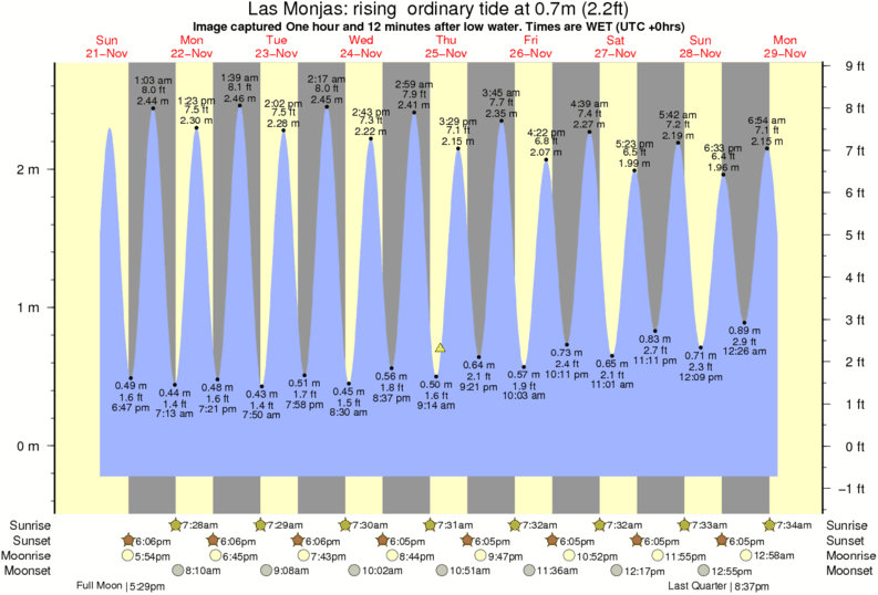 Forecast wind and swell just offshore from Las Monjas around the time the photo was taken