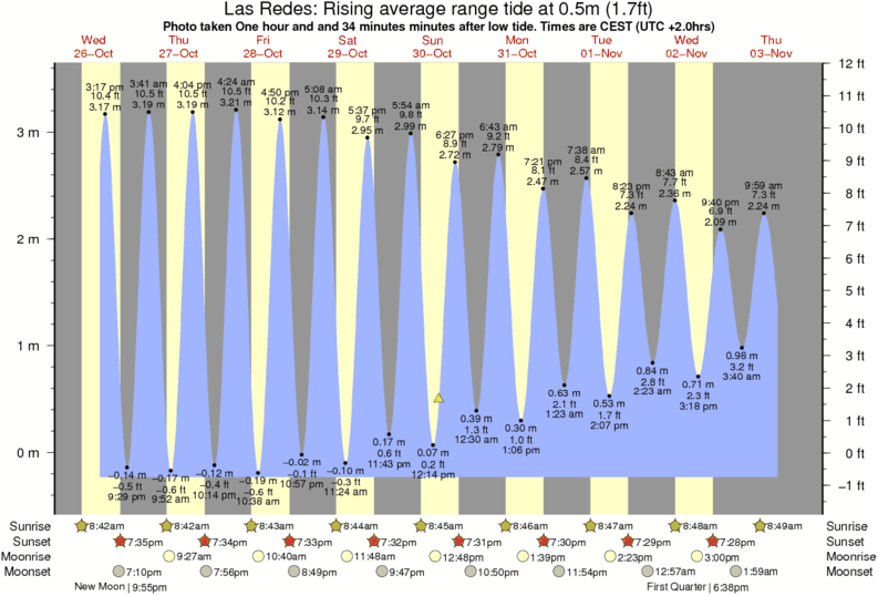 Image captured One hour and 38 minutes after low water (rising spring tide). Tide height was 0.8m (2.7 ft). Range 3.53m (11.6 ft). Toggle tide graph