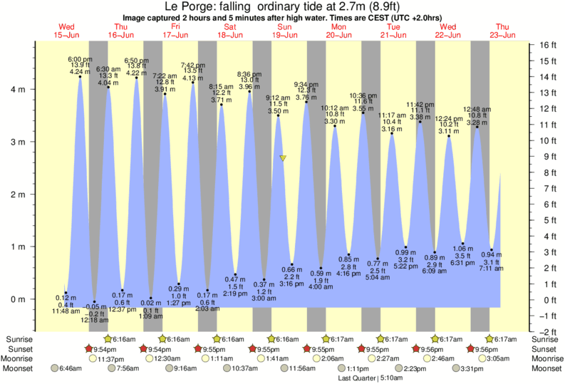 Image captured 2 hours and 5 minutes after high water (falling ordinary tide). Tide height was 2.7m (8.9 ft). Range 4.62m (15.2 ft). Toggle tide graph