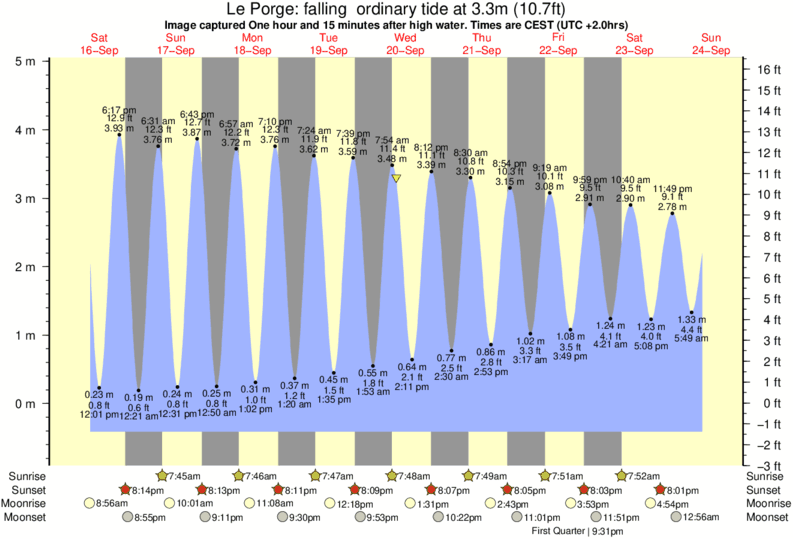 Image captured One hour and 15 minutes after high water (falling ordinary tide). Tide height was 3.3m (10.7 ft). Range 4.97m (16.3 ft). Toggle tide graph