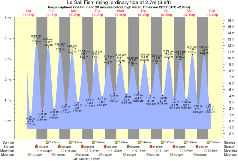 Image captured One hour and 20 minutes before high water (rising ordinary tide). Tide height was 2.7m (8.8 ft). Range 4.95m (16.2 ft). Toggle tide graph