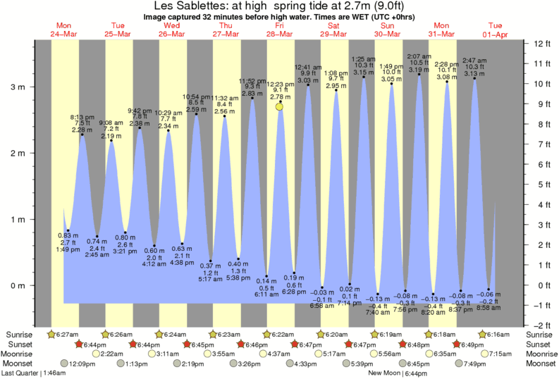 Image captured 32 minutes before high water (at high spring tide). Tide height was 2.7m (9.0 ft). Range 3.62m (11.9 ft). Toggle tide graph