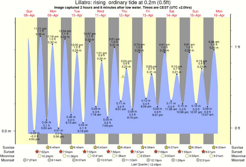Image captured 2 hours and 8 minutes after low water (rising ordinary tide). Tide height was 0.2m (0.5 ft). Range 0.39m (1.3 ft). Toggle tide graph