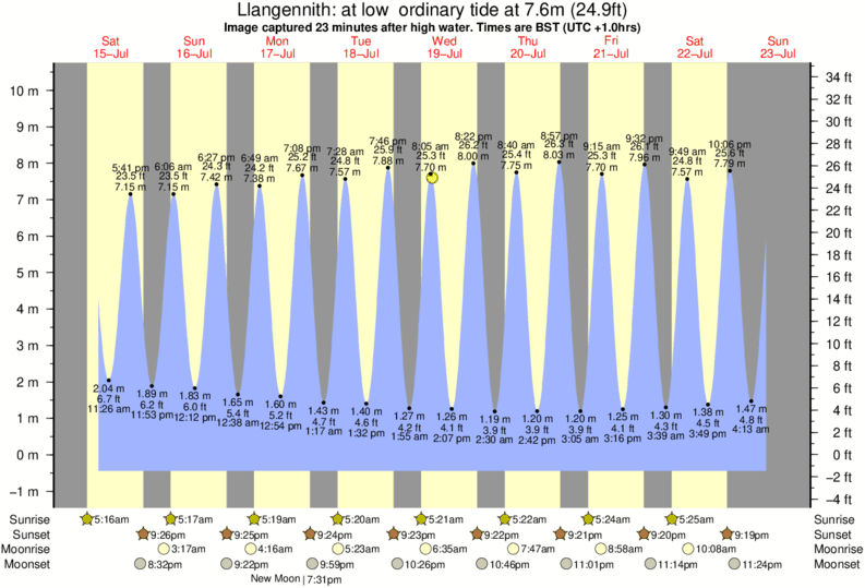 Image captured 23 minutes after high water (at low ordinary tide). Tide height was 7.6m (24.9 ft). Range 10.18m (33.4 ft). Toggle tide graph