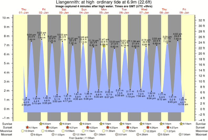Image captured 4 minutes after high water (at high ordinary tide). Tide height was 6.9m (22.6 ft). Range 9.74m (32.0 ft). Toggle tide graph
