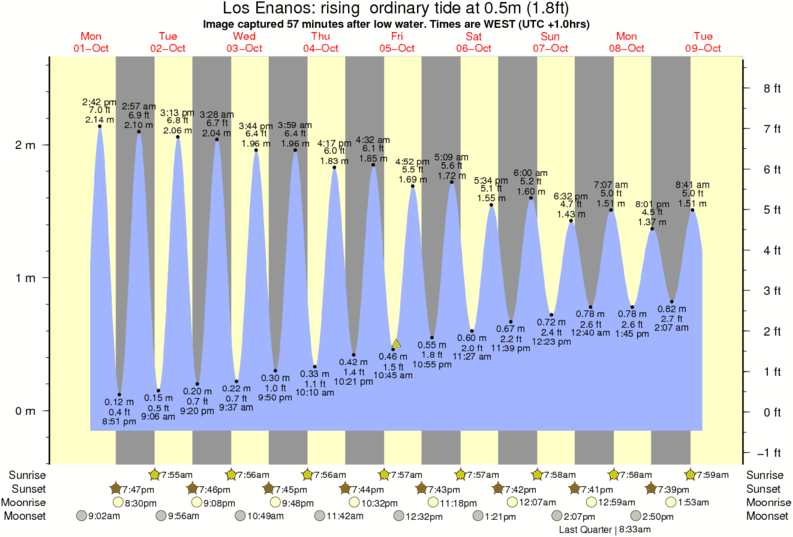 Image captured 57 minutes after low water (rising ordinary tide). Tide height was 0.5m (1.8 ft). Range 2.56m (8.4 ft). Toggle tide graph