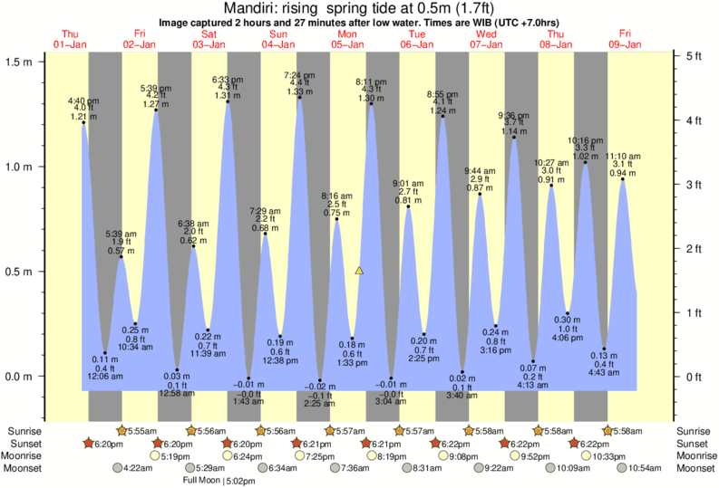 Image captured 2 hours and 27 minutes after low water (rising spring tide). Tide height was 0.5m (1.7 ft). Range 1.47m (4.8 ft). Toggle tide graph
