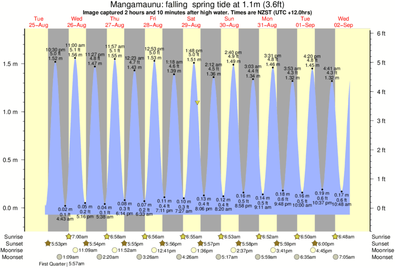 Image captured 2 hours and 10 minutes after high water (falling spring tide). Tide height was 1.1m (3.6 ft). Range 1.76m (5.8 ft). Toggle tide graph