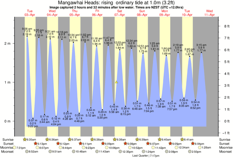 Forecast wind and swell just offshore from Mangawhai Heads around the time the photo was taken