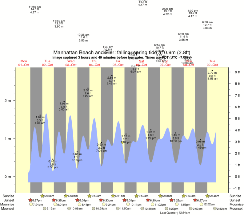 Forecast wind and swell just offshore from Manhattan Beach and Pier around the time the photo was taken