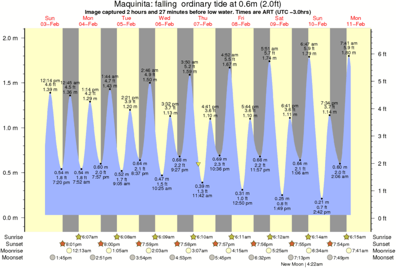 Image captured 2 hours and 27 minutes before low water (falling ordinary tide). Tide height was 0.6m (2.0 ft). Range 1.89m (6.2 ft). Toggle tide graph